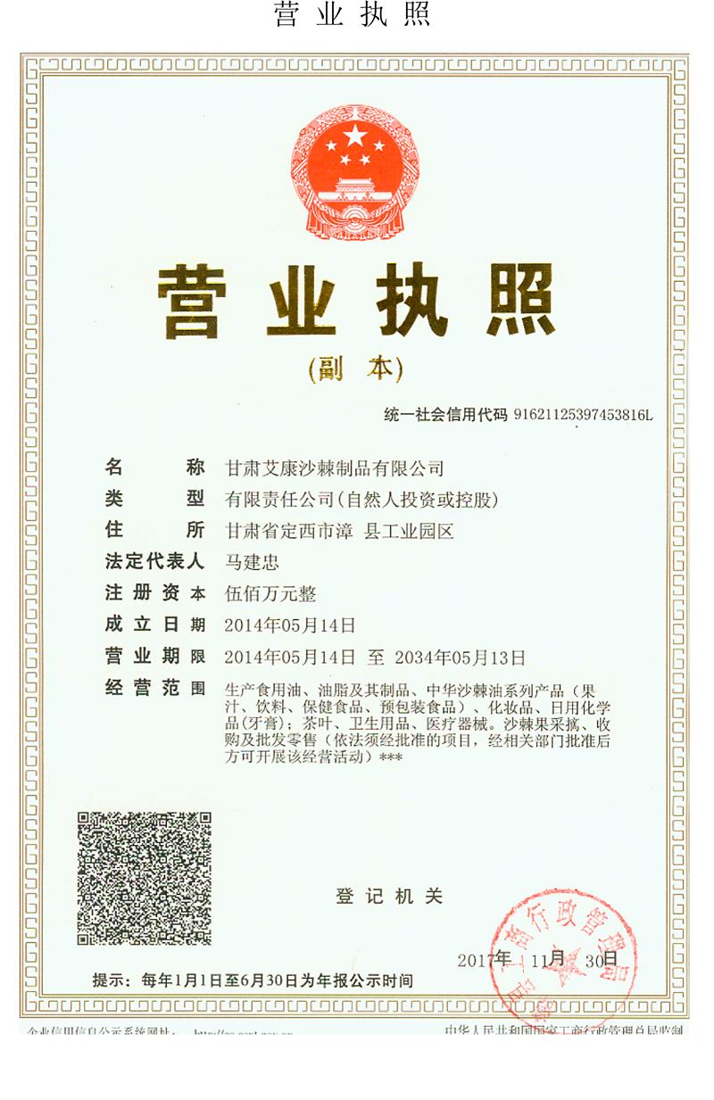 公司名稱: 甘肅艾康沙棘制品有限公司